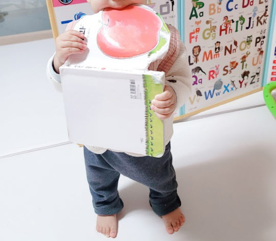 엄마의 마음보다 더 책을 사랑하니 걱정이 되기도 합니다. 책을 좋아하기를 바라는 마음이 었지만 정도가 지나치니 책을 보여줘도 될까 이런 생각이 듭니다. 그래서 가끔 보여줬습니다. 처음 책을 보여주고 6개월이 지난 지금도 이 책을 잘 먹습니다. 다른 책을 보여주기도 하는데 이 책을 가장 잘 먹는 걸 보면 매우 좋아하나 봅니다.