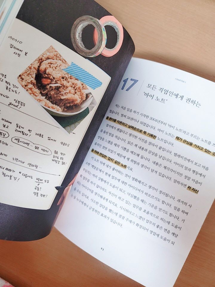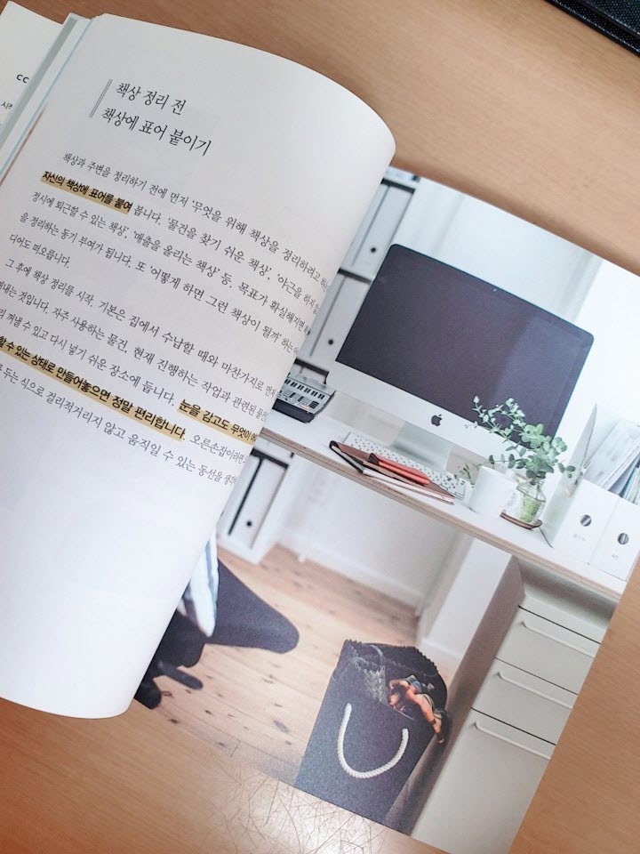 ch1. 책상 정리 아이디어, ch2. 시간 관리 아이디어, ch3. 일과 육아의 균형 잡기, ch4.생각 정리 아이더어로 나누어져 있습니다. 구성마저 깊고 단단함이 느껴집니다. 단순히 책상 정리 팁 정도만 생각했었어요. 생각보다 깊은 정리 팁에 나는 이렇게 철저하게 나를 다룰 수 있을까 하는 생각에 허들이 높게 느껴지긴 했습니다.